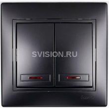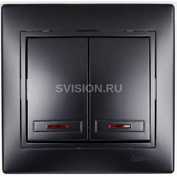 Описание Выключатель 2-кл. 1п СП Мира 10А IP20 с подсветкой со вставкой черн. бархат LEZARD 701-4242-112