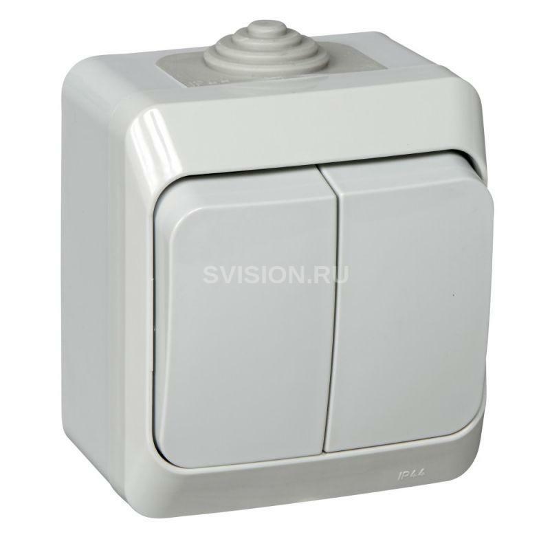 Минимальная глубина встроенной монтажной коробки: 51ммКоличество модулей (модульная система): 0С полем для надписи: НетГлубина устройства: 49ммВысота устройства: 79ммШирина устройства: 66ммТип подсветки: Не входит в комплектС монтажной панелью: НетВозвратно-нажимной: НетПоверхность для надписи: НетЗащитное покрытие поверхности: НеобработаннаяНе содержит (без) галогенов: ДаМатериал: ПластикПодходит для степени защиты IP: IP44Цвет: СерыйКоммутируемый ток люминесцентных ламп: 10AXНоминальный ток: 10АНоминальное напряжение: 250ВТип комплектации: Основной элемент с корпусом в сбореСпособ монтажа: Открытой установкиТип включения/управления: Клавиша/КнопкаКоличество исполнительных клавиш: 2