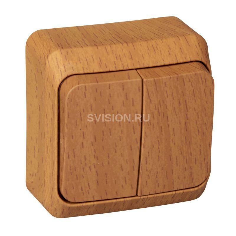 Количество модулей (модульная система): 0С полем для надписи: НетГлубина устройства: 35.5ммВысота устройства: 61ммШирина устройства: 61ммТип подсветки: Не входит в комплектГлубина монтажа, установки: 35ммС монтажной панелью: НетВозвратно-нажимной: НетПоверхность для надписи: НетЗащитное покрытие поверхности: НеобработаннаяНе содержит (без) галогенов: ДаМатериал: ПластикПодходит для степени защиты IP: IP20Цвет: ДеревоКоммутируемый ток люминесцентных ламп: 10AXНоминальный ток: 10АНоминальное напряжение: 250ВТип комплектации: Основной элемент с корпусом в сбореСпособ монтажа: Открытой установкиТип включения/управления: Клавиша/КнопкаКоличество исполнительных клавиш: 2