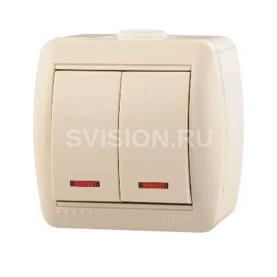 Описание Выключатель 2-кл. ОП Ната 10А IP20 с подсветкой крем. LEZARD 710-0300-112
