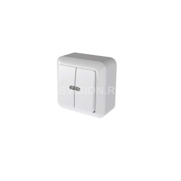 Описание Выключатель 2-кл. ОП Оптима 10А IP20 А510-387 с индикацией с монтаж. пластиной сл. кость Кунцево 8034