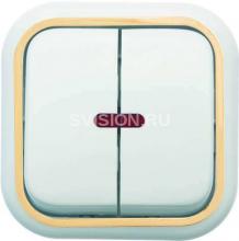 Описание Выключатель 2-кл. ОП Валентина 10А IP20 7637 с индикацией бел./зол. Кунцево 7637