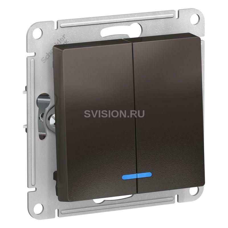 Описание Выключатель 2-кл. СП AtlasDesign 10А IP20 (сх. 5а) 10AX с подсветкой механизм мокко SE ATN000653
