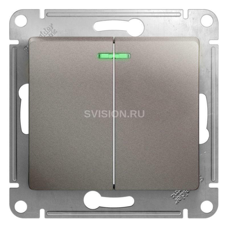 Описание Выключатель 2-кл. СП Glossa 10А IP20 (сх. 5а) 10AX с подсветкой механизм платина SE GSL001253