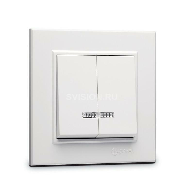 Описание Выключатель 2-кл. СП Karea 10А IP20 с подсветкой бел. Makel 56001023