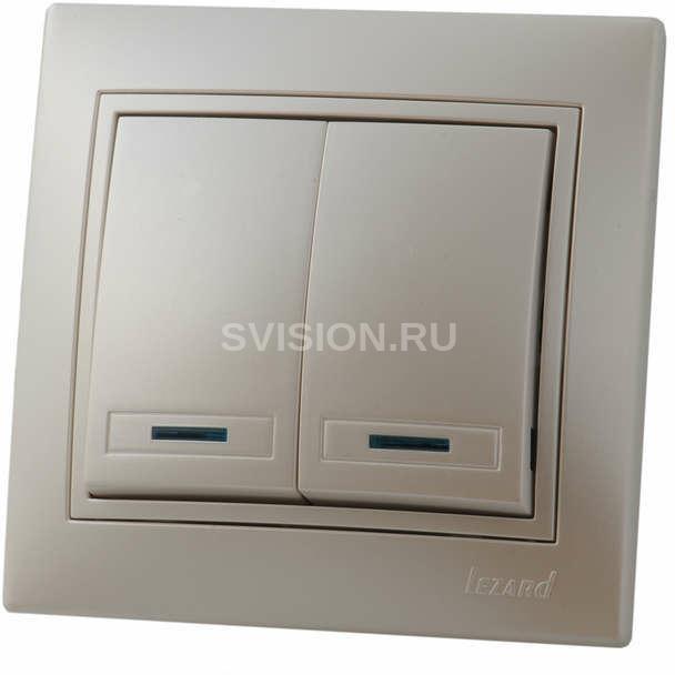 Описание Выключатель 2-кл. СП Мира 10А IP20 с подсветкой со вставкой жемчуж./бел. перламутр. LEZARD 701-3030-112