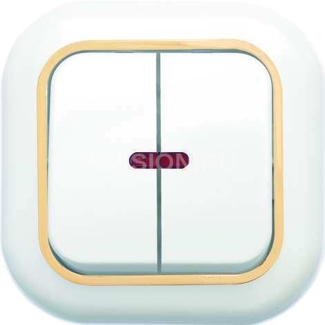 Описание Выключатель 2-кл. СП Валентина 10А IP20 С56-175 с индикацией бел./зол. Кунцево 7650