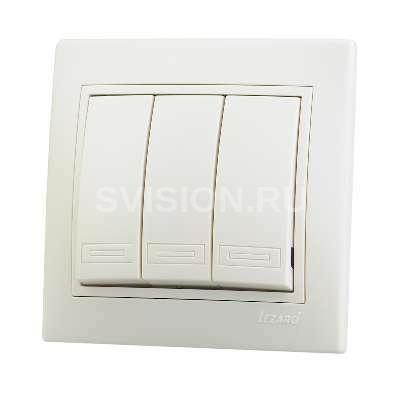 Описание Выключатель 3-кл. СП Мира 10А IP20 со вставкой крем. LEZARD 701-0303-109