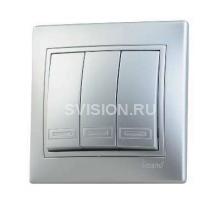 Описание Выключатель 3-кл. СП Мира 10А IP20 со вставкой сер. метал. LEZARD 701-1010-109