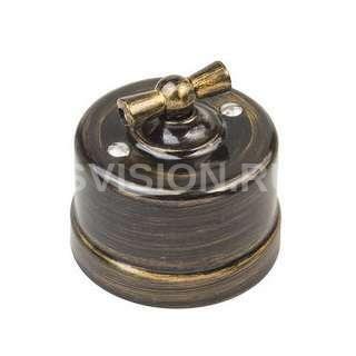 Описание Выключатель поворотный 2-кл. ОП Лизетта 10А IP20 ретро 4 полож. ABS-пластик бронз. Bironi B1-202-25