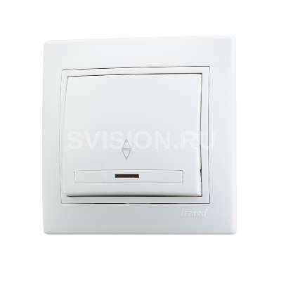 Описание Выключатель проходной 1-кл. СП Мира 10А с подсветкой с бел. вставкой бел. LEZARD 701-0202-114