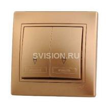 Описание Выключатель проходной 2-кл. СП Мира 10А IP20 со вставкой зол. метал. LEZARD 701-1313-106