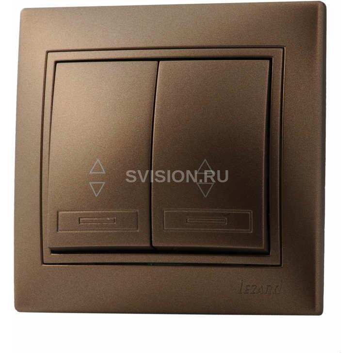 Описание Выключатель проходной 2-кл. СП Мира 10А со вставкой свет. корич. перламутр. LEZARD 701-3131-106